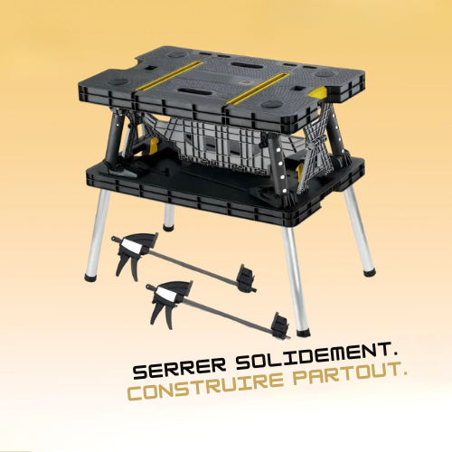 IronFold™ Établi Pliant & Tréteau Portable Conçu pour le bricolage exigeant, les réparations et l’aménagement...