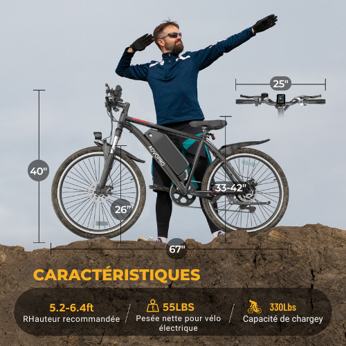 • Pneus : 26 pouces – anti-crevaison, tout-terrain