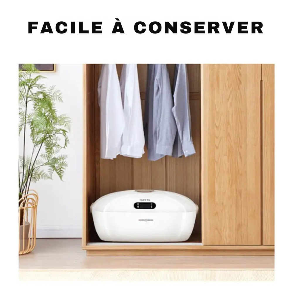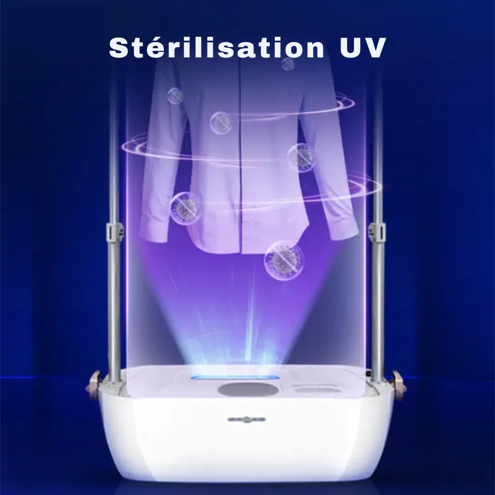 La santé de votre foyer est essentielle. AurePress™ intègre une fonction de stérilisation UV capable d’éliminer jusqu’à 99,97 % des bactéries et acariens. Son tube UV à ondes courtes diffuse une lumière ultraviolette puissante assurant une désinfection efficace de vos vêtements et un environnement domestique plus sain.