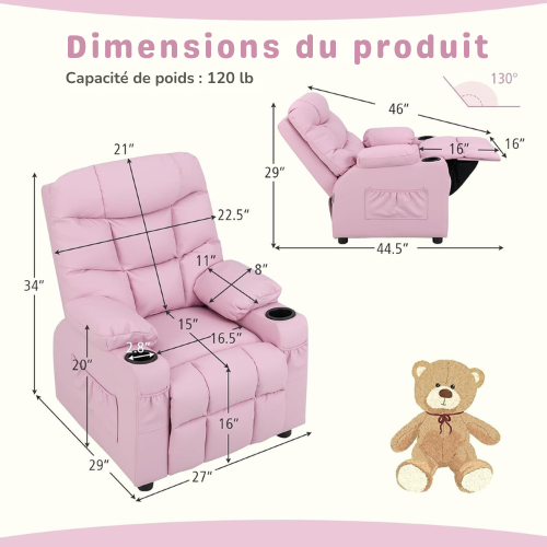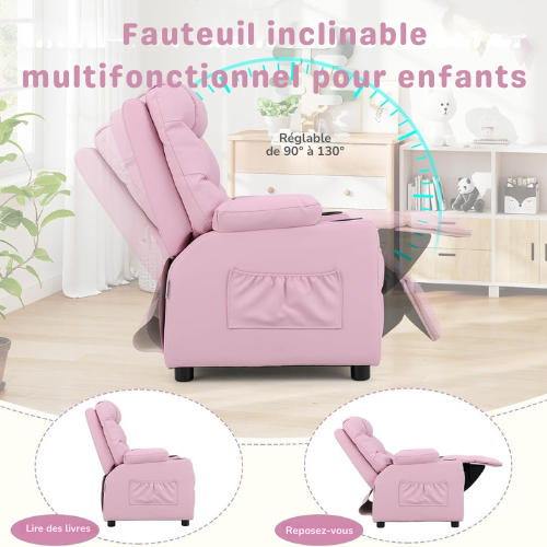 Grâce à son mécanisme d’inclinaison fluide, le dossier s’allonge jusqu’à 130° selon les besoins de votre enfant : lecture, télévision, repos ou petite sieste. En s’inclinant vers l’arrière, le repose-pieds se déploie automatiquement pour offrir un soutien complet des jambes et un confort total.