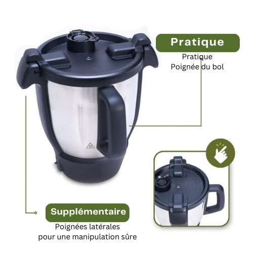 Le Culinova™ Pro-M 3.0 est l’un des robots cuiseurs multifonctions les plus complets du marché, offrant une alternative performante et accessible aux modèles haut de gamme. Conçu pour remplacer plusieurs appareils de cuisine, il hache, mélange, mixe, cuit, cuit à la vapeur, pétrit, saisit et bien plus encore — le tout dans une seule machine intelligente. Grâce à sa puissance élevée, son écran tactile intuitif, sa connectivité Wi-Fi et son ensemble d’accessoires complets, il simplifie la cuisine du quotidien pour les familles, les passionnés de cuisine et les foyers actifs.