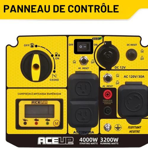 Avec 4000 watts en pointe et 3200 watts en continu, ElectraMax™ offre une puissance stable pour les besoins intensifs. Son moteur OHV de 149cc assure jusqu’à 8 heures d’autonomie à 50% de charge avec seulement 5 litres de carburant. Conçu pour une utilisation en 60 Hz, il garantit des performances constantes à chaque utilisation.