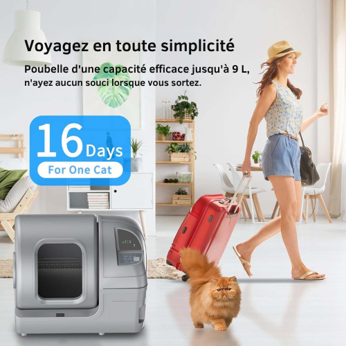 - Capacité XXL (100 L) adaptée à plusieurs chats