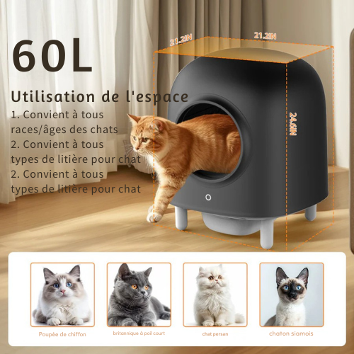 FluxiClean™ apporte une propreté sans effort à votre foyer grâce à son système de nettoyage automatique, ses capteurs intelligents et son contrôle complet via application mobile. Conçue pour éliminer la corvée de nettoyage quotidien, réduire les odeurs et améliorer l’hygiène de votre chat, c’est la solution moderne que chaque propriétaire de chat attendait.