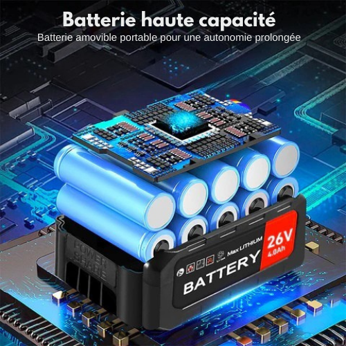 - 🔋 Double Batterie Lithium-Ion 26V : Autonomie prolongée et fiabilité avec protection contre la surcharge et la température.