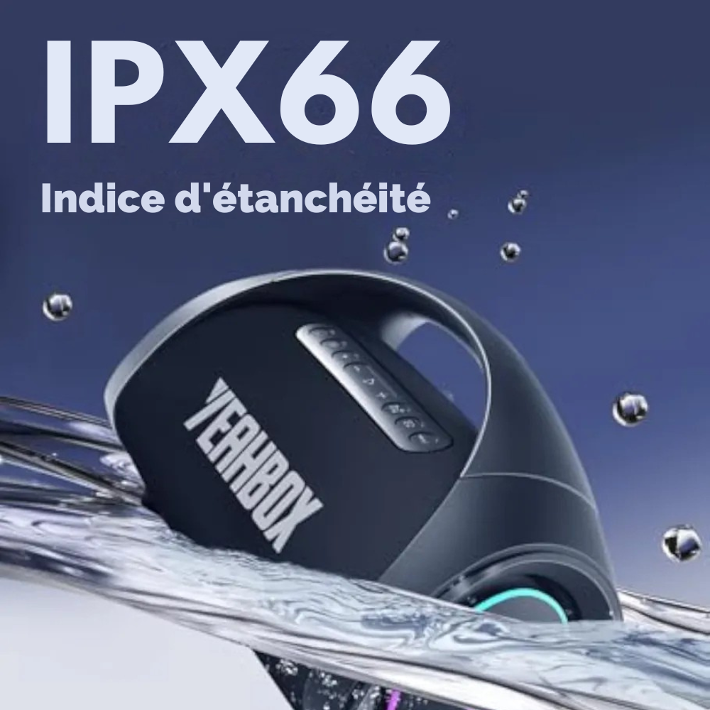 Certifiée IPX66 étanche et résistante à la poussière, la ThunderWave™ est prête pour toutes vos aventures : plages, piscines, randonnées ou festivals. Son boîtier robuste en ABS renforcé résiste aux éclaboussures et aux conditions extérieures tout en garantissant une qualité sonore constante.