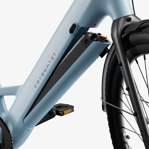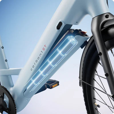 Grâce à son cadre 100% fibre de carbone, l’UrbanGlide™ Step-Thru est nettement plus léger que les vélos électriques en aluminium — environ 16,5 kg seulement. Le carbone offre une rigidité exceptionnelle, une résistance à la fatigue remarquable et un confort de conduite supérieur :
